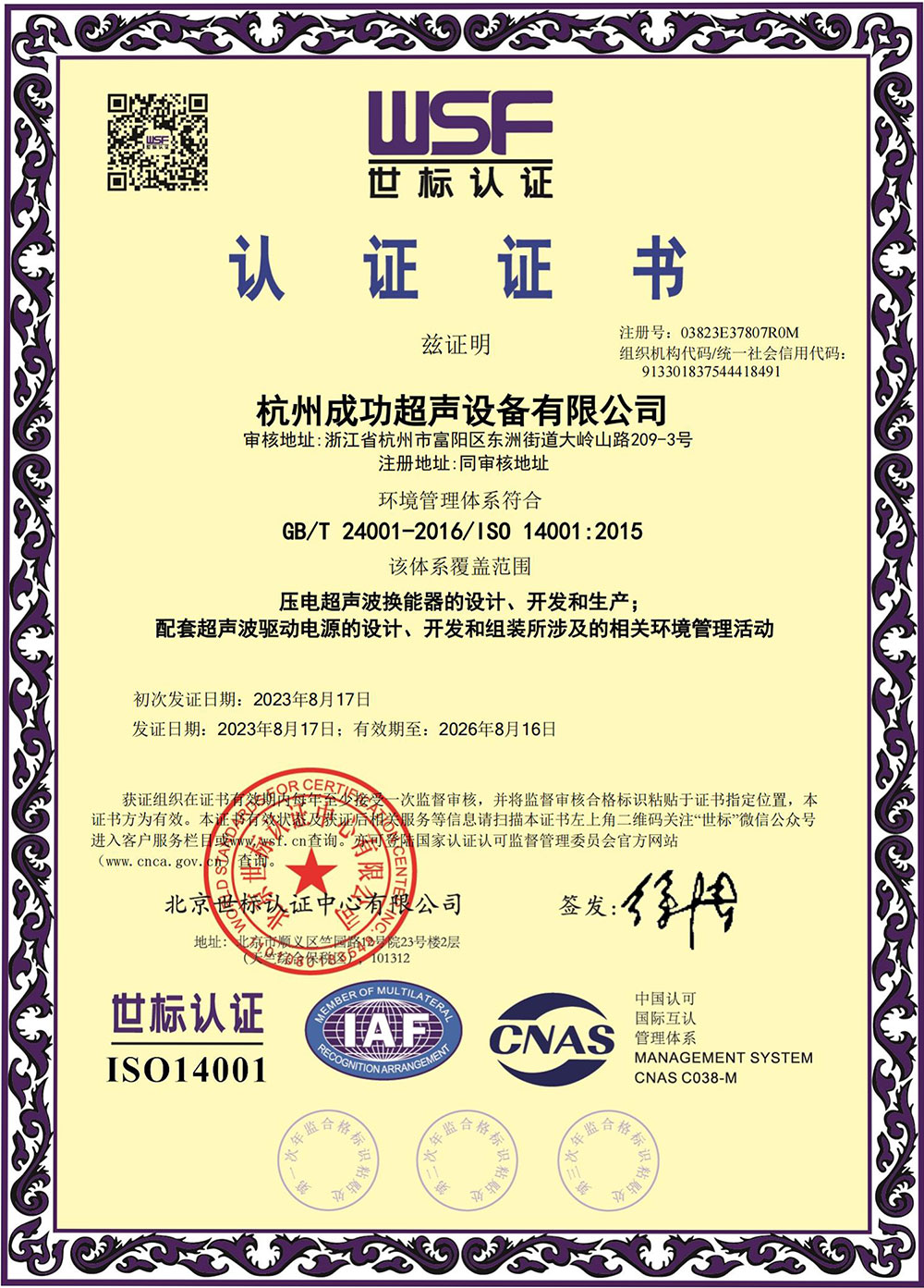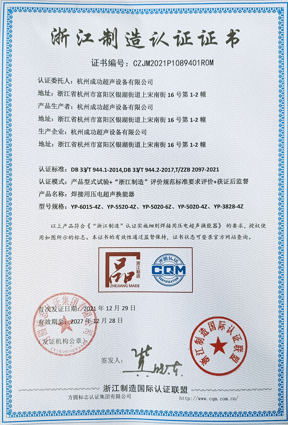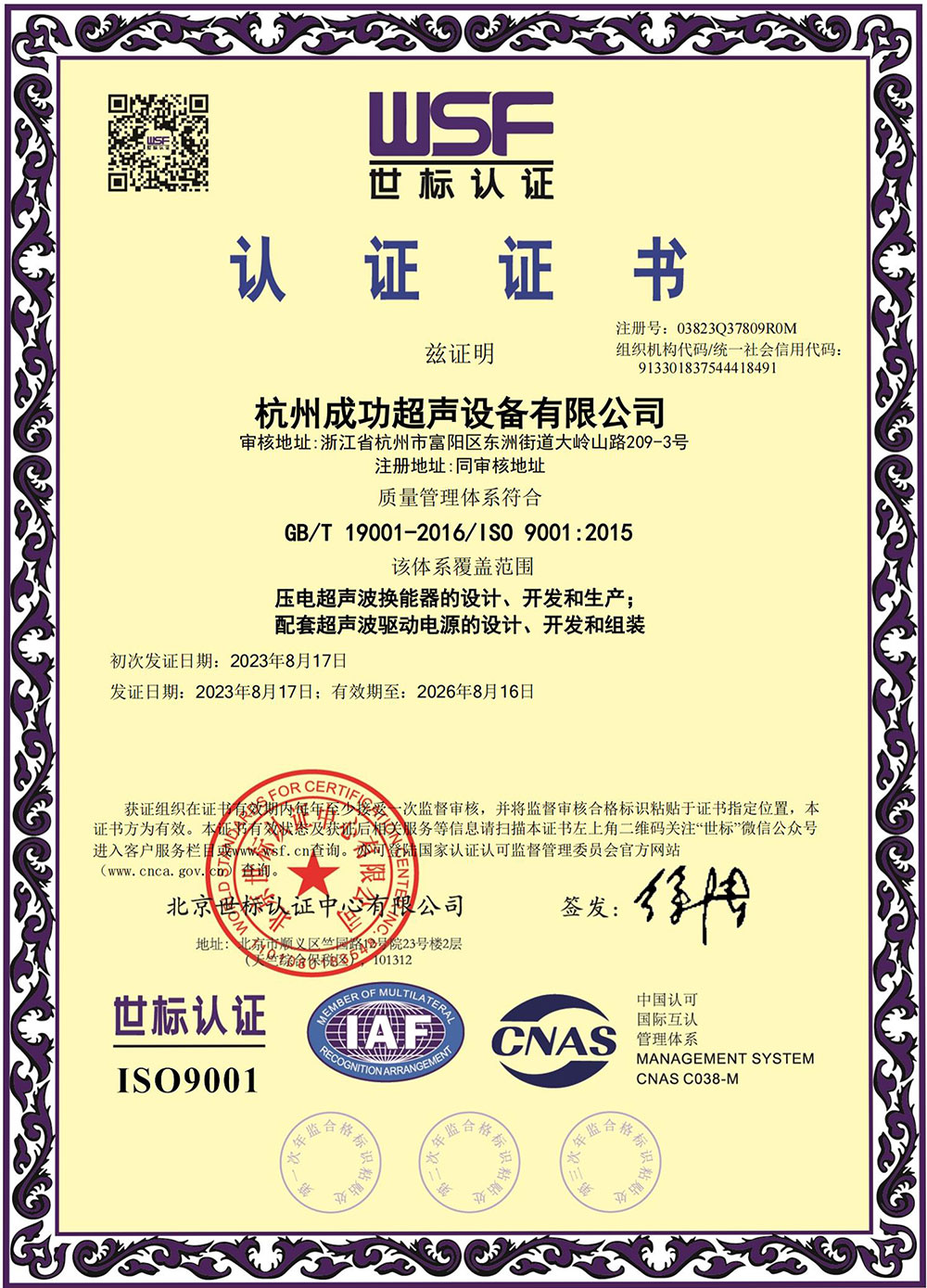 杭州成功超聲設(shè)備有限公司創(chuàng)立于1995年,是國(guó)內(nèi)從事超聲應(yīng)用研究、大功率超聲波換能器開發(fā)與生產(chǎn)的專業(yè)廠商及國(guó)家高新技術(shù)企業(yè)。公司主要產(chǎn)品有換能器、超聲驅(qū)動(dòng)電源等。這些產(chǎn)品作為功率超聲應(yīng)用行業(yè)的核心關(guān)鍵部件廣泛應(yīng)用于聲化學(xué)、塑料焊接、金屬焊接、橡膠切割、無(wú)紡布焊接等領(lǐng)域。公司對(duì)中國(guó)換能器產(chǎn)品進(jìn)行了行業(yè)的命名和行業(yè)標(biāo)準(zhǔn)的確定。產(chǎn)品遍布全國(guó)并行銷海外多個(gè)國(guó)家和地區(qū),品質(zhì)和性能在行業(yè)中負(fù)有盛名,其中超聲焊接換能器國(guó)內(nèi)市場(chǎng)占有率達(dá)到50%以上。